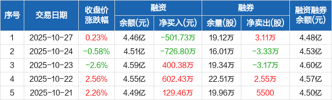苏交科:融资净偿还501.73万元,融资余额4.46亿元(10-27)
