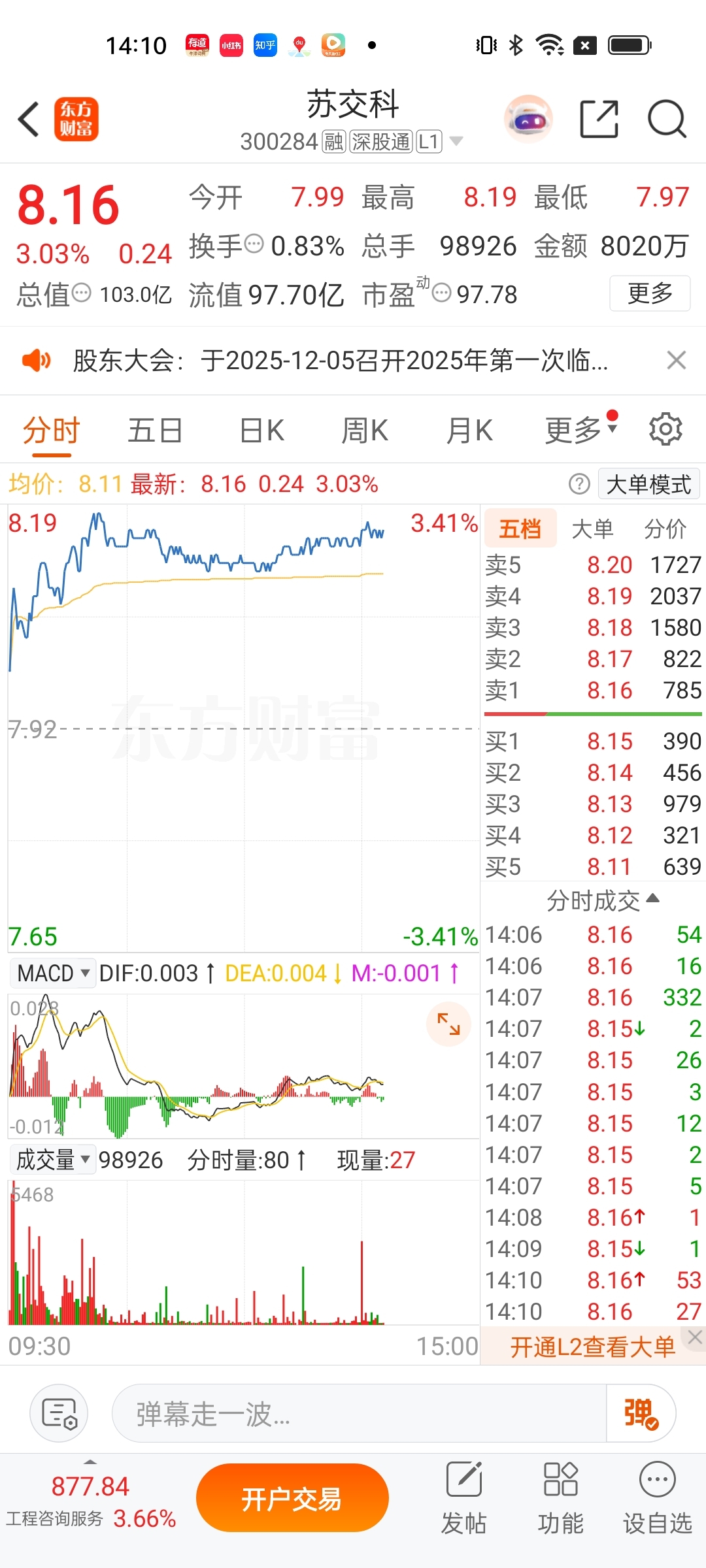 $苏交科(SZ300284)$ 2:08分和2:09分各自成交1手,开眼界了