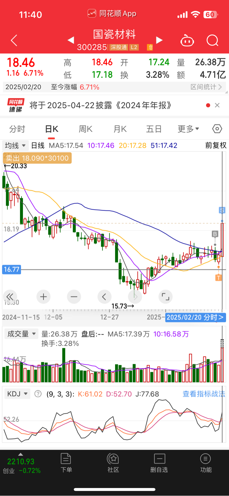 卖飞,太强了,想等回落分时均线的,直接不给机会,里面兄弟拿住,发财里回来了。