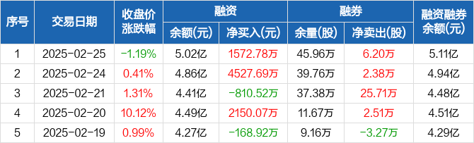 国瓷材料:融资余额5.02亿元,创近一年新高(02-25)