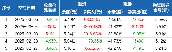 国瓷材料:融资余额5.49亿元,创近一年新高(03-05)