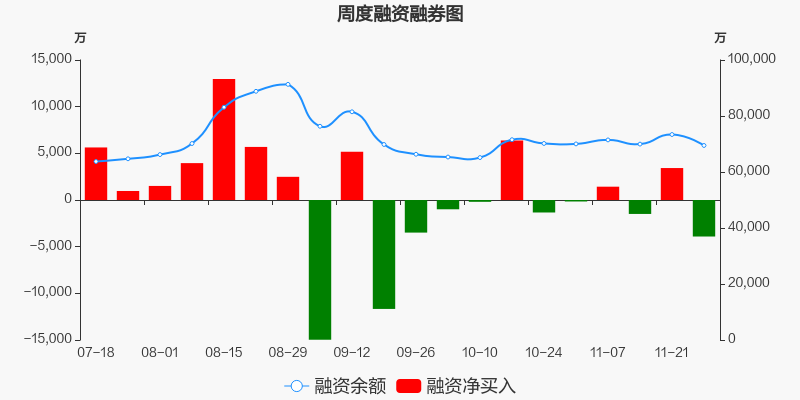 国瓷材料本周(2025/11/24-2025/11/28)累计涨幅达4.34%,截至11月28日最新股价报收22.83元。从增量上来看,11月24日至11月27日融资买入交易规模1.94亿元,融资偿还规模2.33亿元,期内融资净偿还3911.77万元。从存量上来看,截止11月30日,国瓷材料融资融券余额7.03亿元,其中融资余额规模6.95亿元,融券余额规模852.8万元。