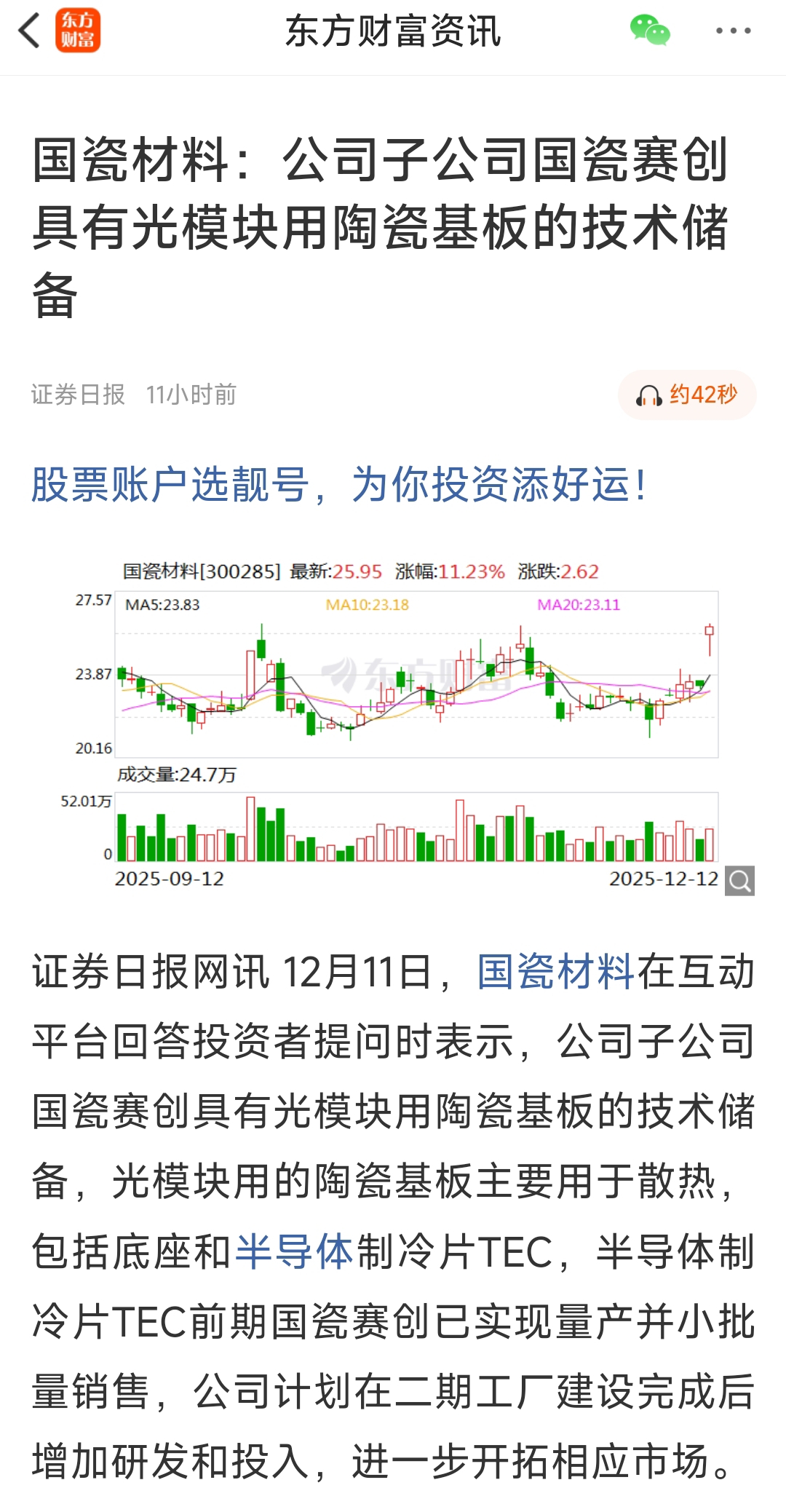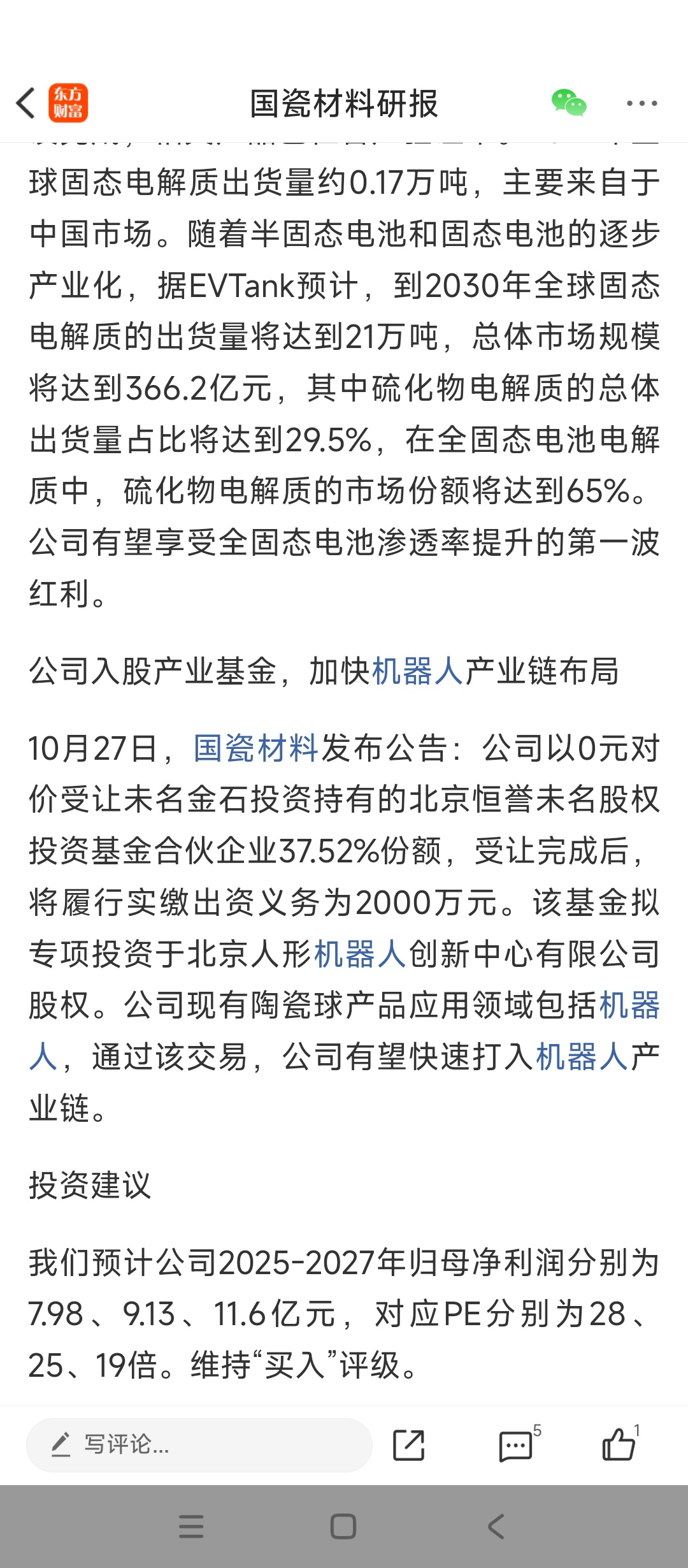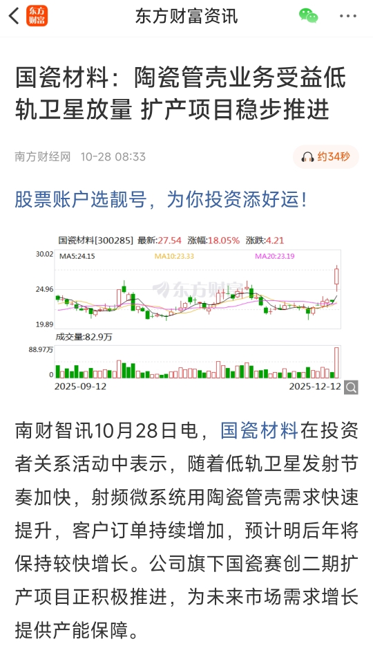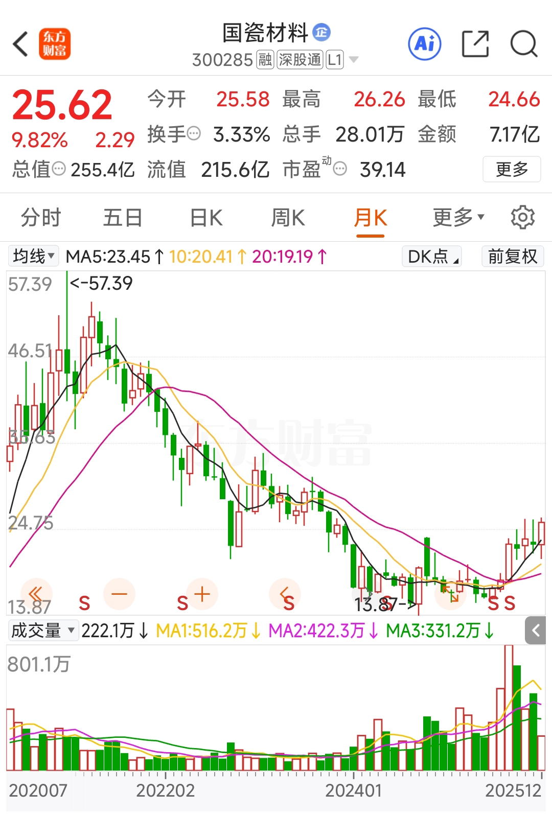 $国瓷材料(SZ300285)$ 商业航天+光模块+卫星导航+固态电池+芯片半导体+人形机器人+医疗+房地产+回购,5年大底月线突破,日线双底突破,买入。三季报每股收益0.49元,2025-27每股收益0.7/0.87/1.03元