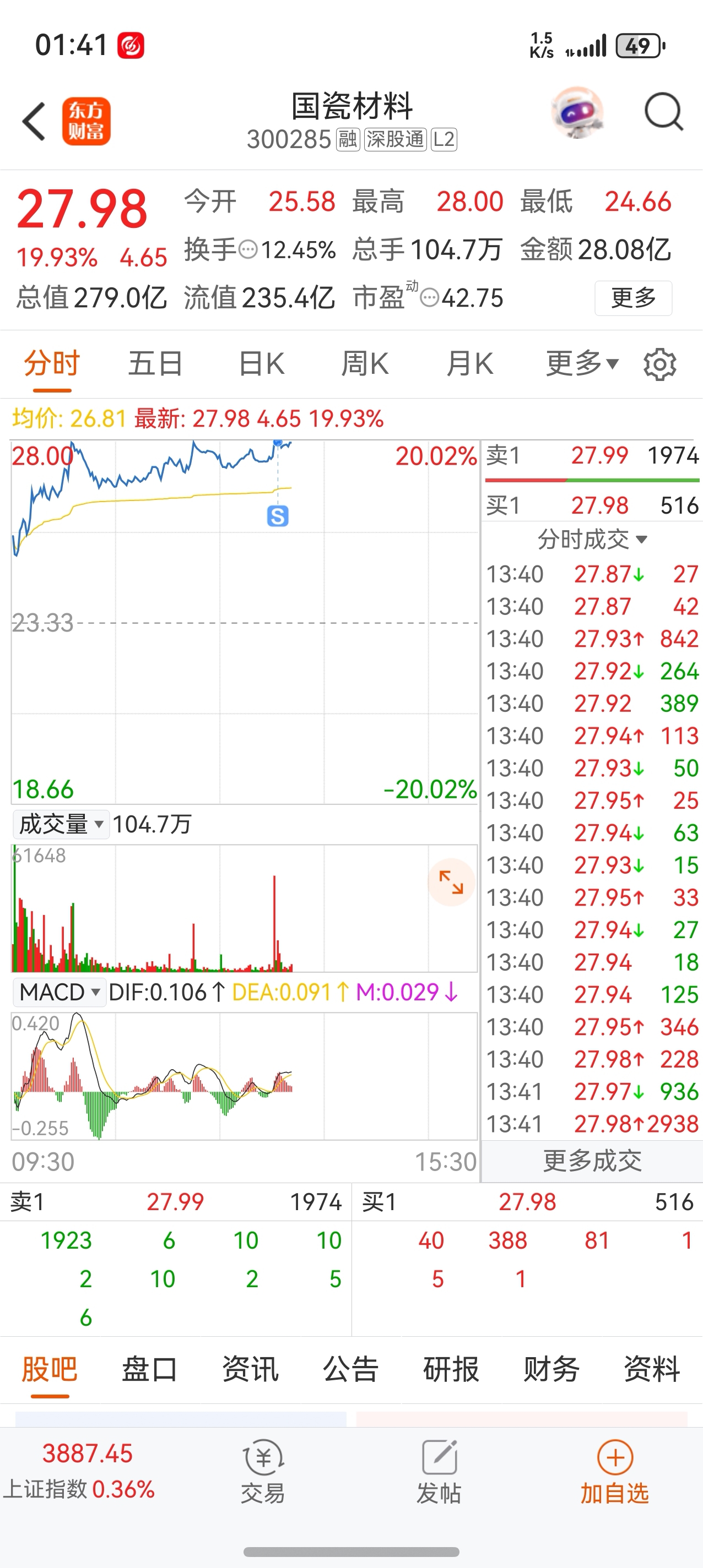 $国瓷材料(SZ300285)$ 明天应该还有溢价,卖得到底对不对?