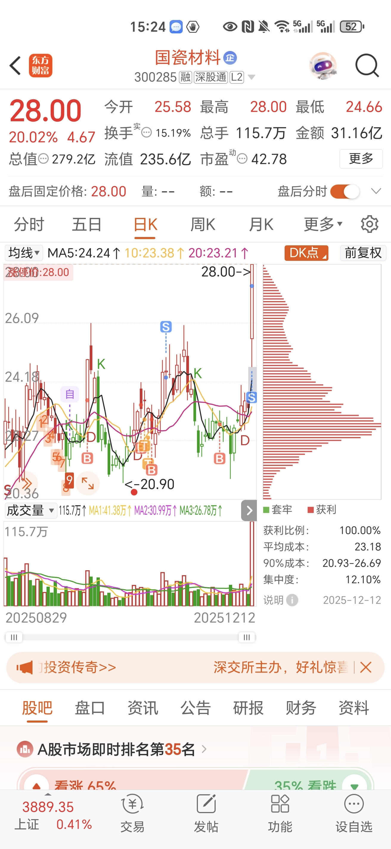 $国瓷材料(SZ300285)$ 我一般发完就会跌