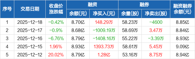 国瓷材料:融资净买入148.29万元,融资余额8.7亿元(12-18)