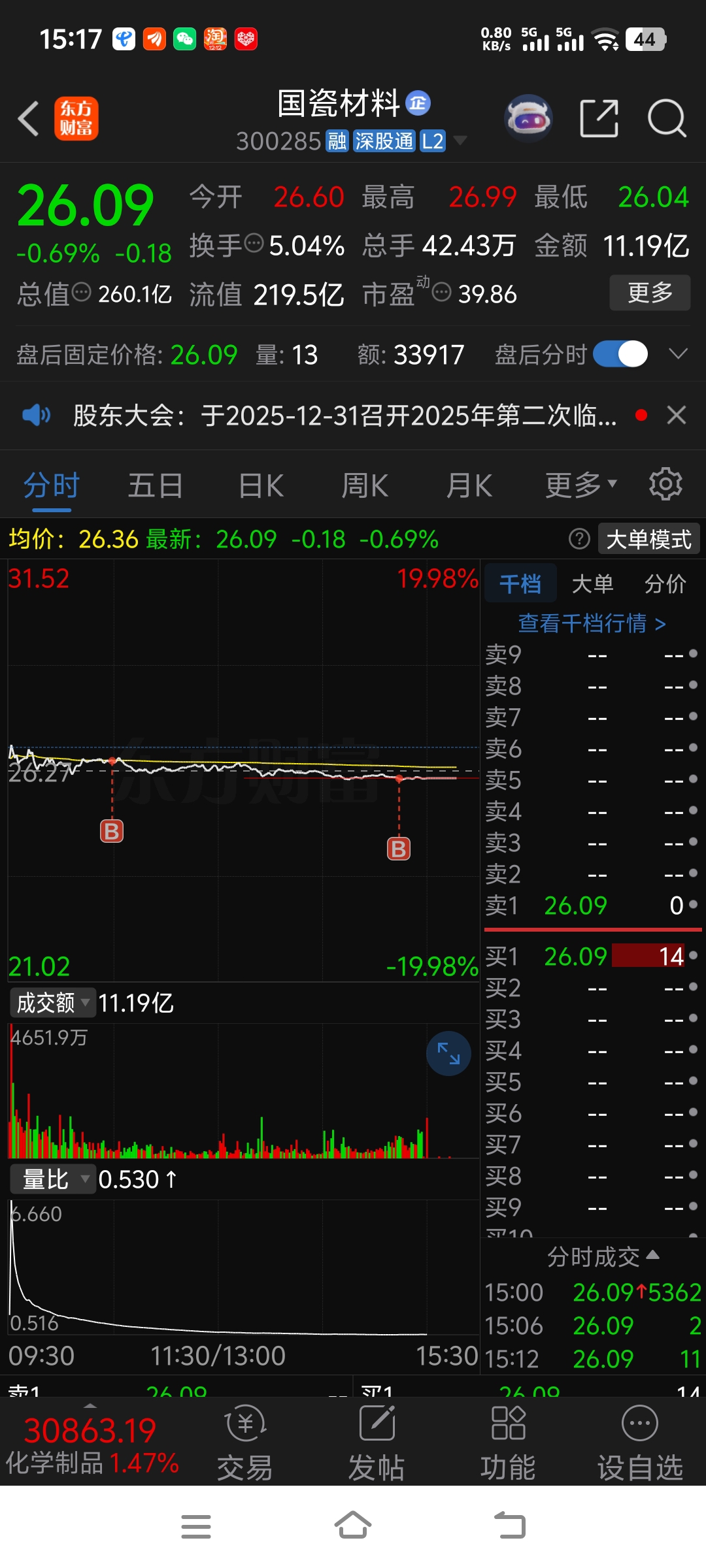 $国瓷材料(SZ300285)$ 今天实盘展示一下,今天第二次加仓,我强烈看多!至于具体到哪个位置,我不作评论,以免误导大家!