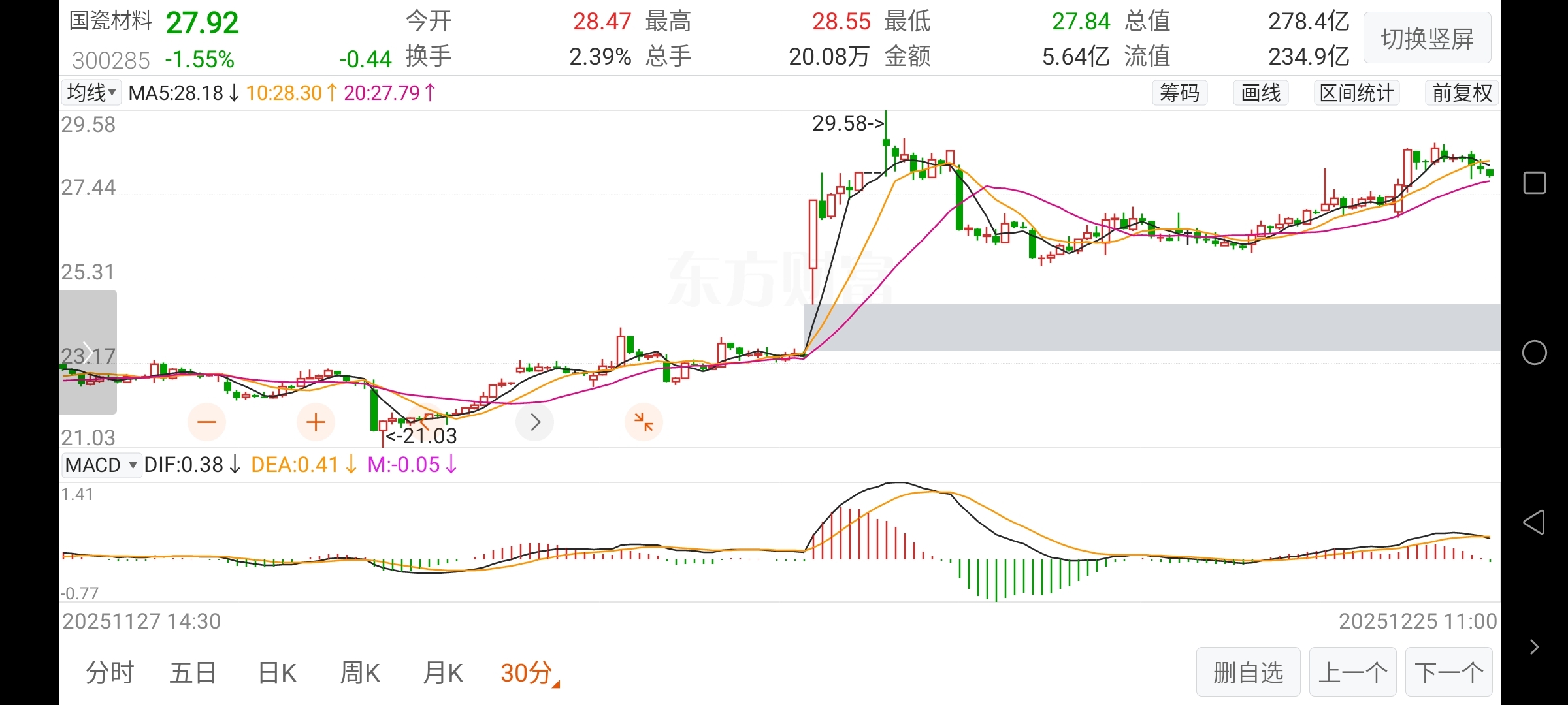 $国瓷材料(SZ300285)$ 30分钟线,一个典型的三类买点。加油干