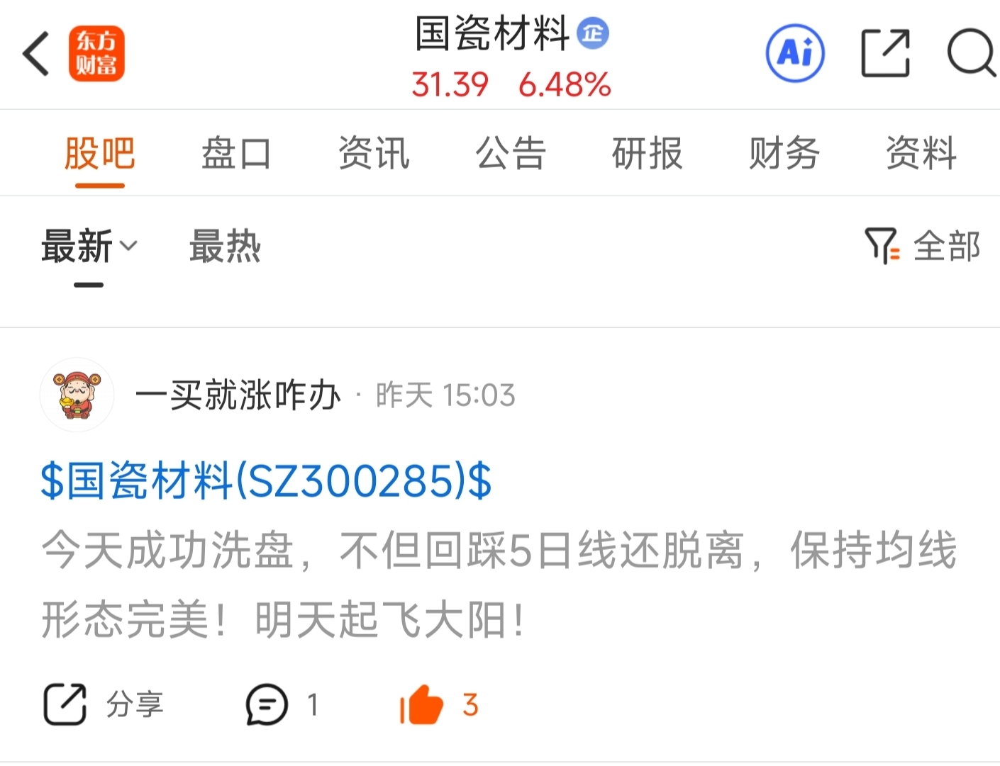 温馨提示: 1.根据《证券法》规定,禁止编造、传播虚假信息或者误导性信息,扰乱证券市场;2.用户在本社区发表的所有资料、言论等仅代表个人观点,与本网站立场无关,不对您构成任何投资建议。用户应基于自己的独立判断,自行决定证券投资并承担相应风险。《东方财富社区管理规定》