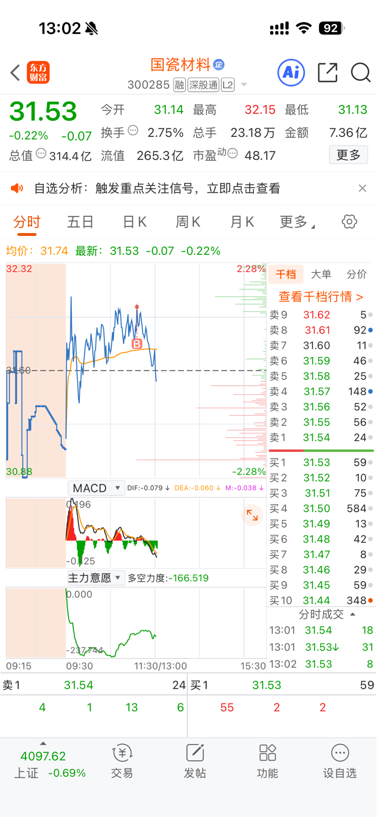 $国瓷材料(SZ300285)$ 真服了 刚买就A