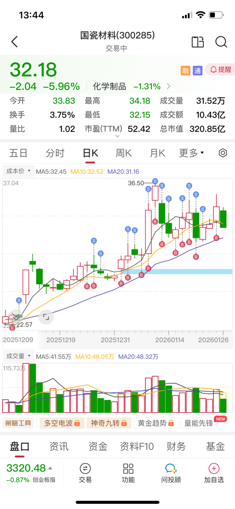 $国瓷材料(SZ300285)$ 见跌就是大阴线,越来越难操作了,我怕了,先撤,祝留下的兄弟们发财吧!