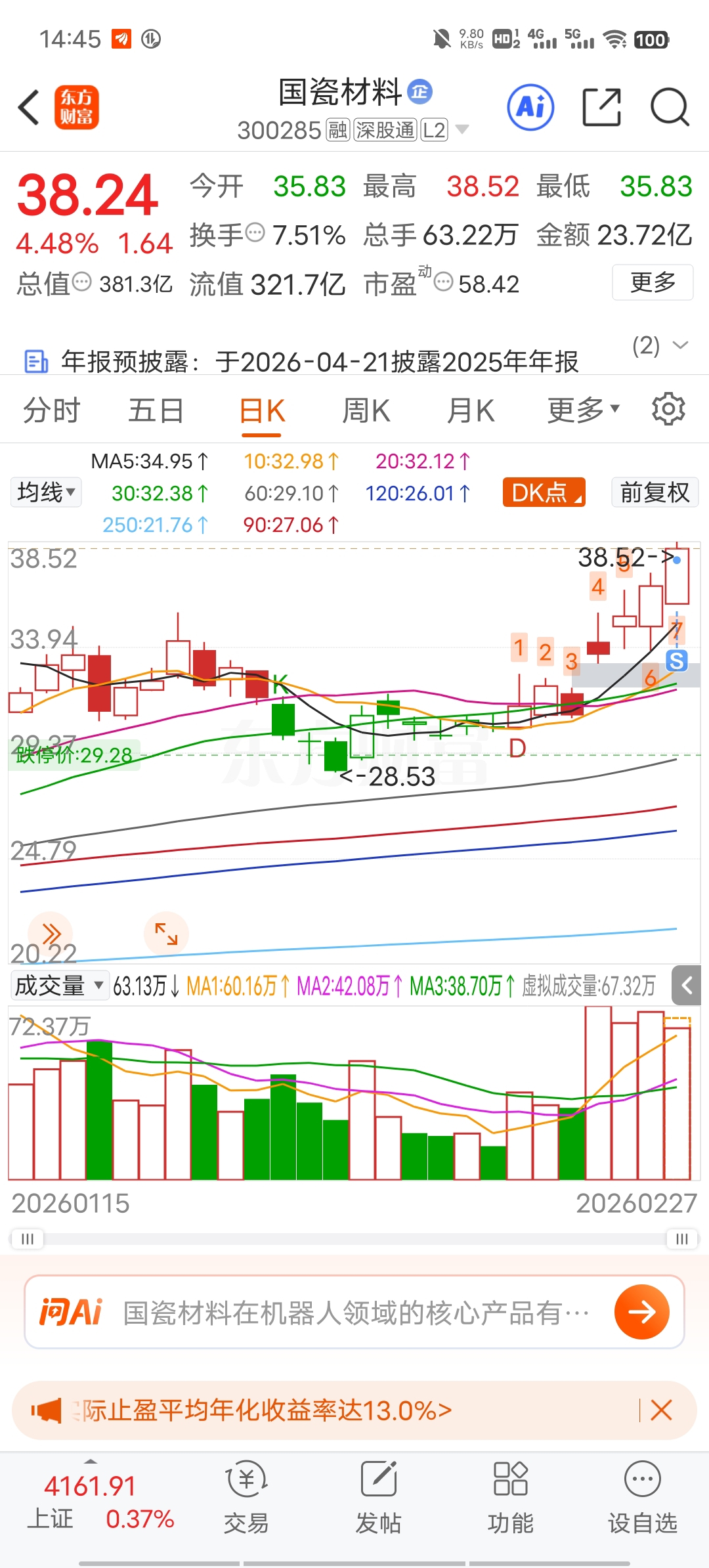 $国瓷材料(SZ300285)$ 看上我这三瓜两枣