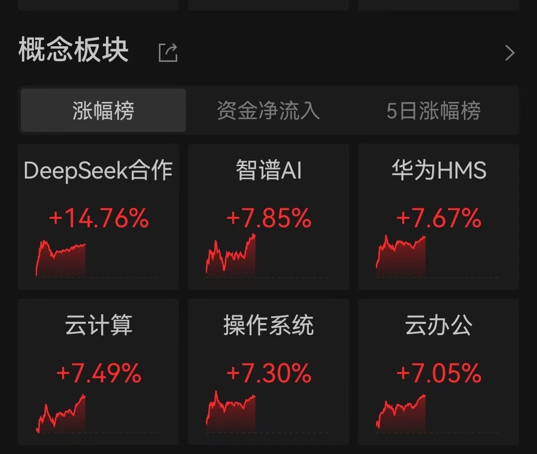 此外,智谱AI、华为HMS、云计算、操作系统等板块涨幅居前。