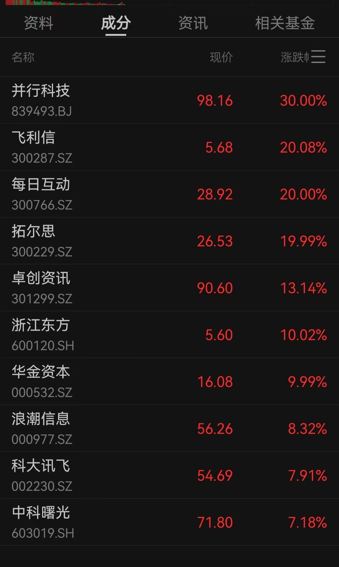 个股而言,并行科技“30CM”涨停,飞利信、每日互动均斩获“20CM”涨停。