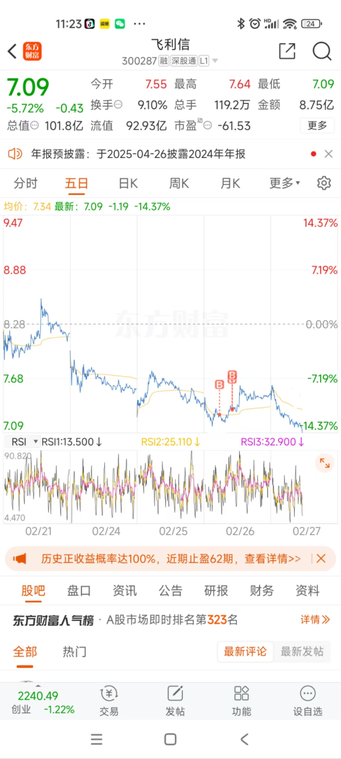 $飞利信(SZ300287)$ 后悔早上不清仓