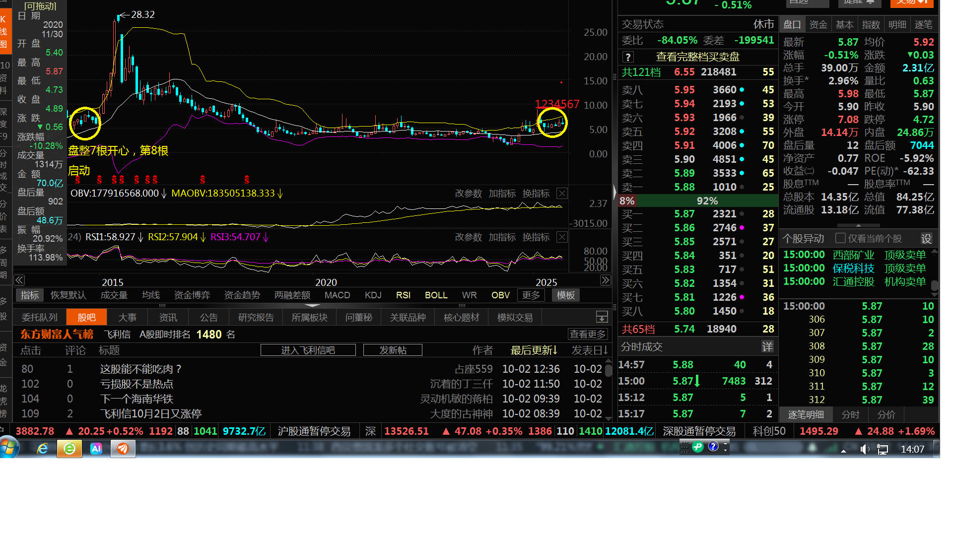 10月份第8根也就是不得不选择突破方向,左边第8根标明是向上突破,从现在月线喇叭口看形态指标比上次好,全部在中上轨之间整理,长线指标是骗不了人的从8.93下来换手率超过全部换手10次,也就是百分之1000.虽然效果微乎其微,
