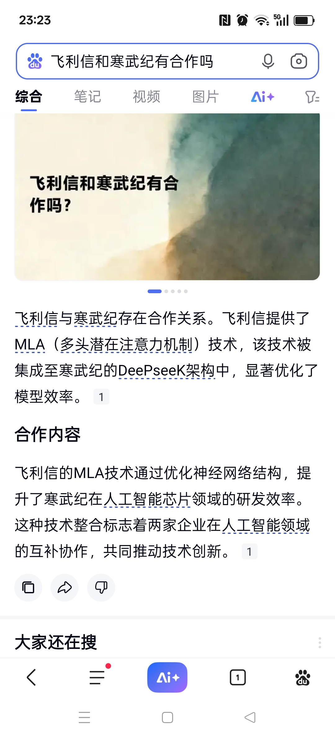 $飞利信(SZ300287)$ 和寒武纪有合作关系