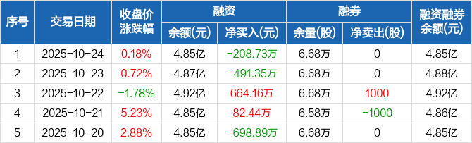 飞利信:融资净偿还208.73万元,融资余额4.85亿元(10-24)