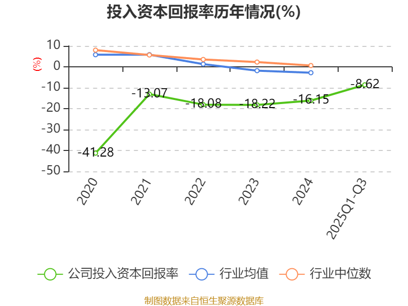 盈利能力方面, 2025年前三季度公司加权平均净资产收益率为-8.98%,同比下降8.98个百分点。公司2025年前三季度投入资本回报率为-8.62%,较上年同期上升0.79个百分点。