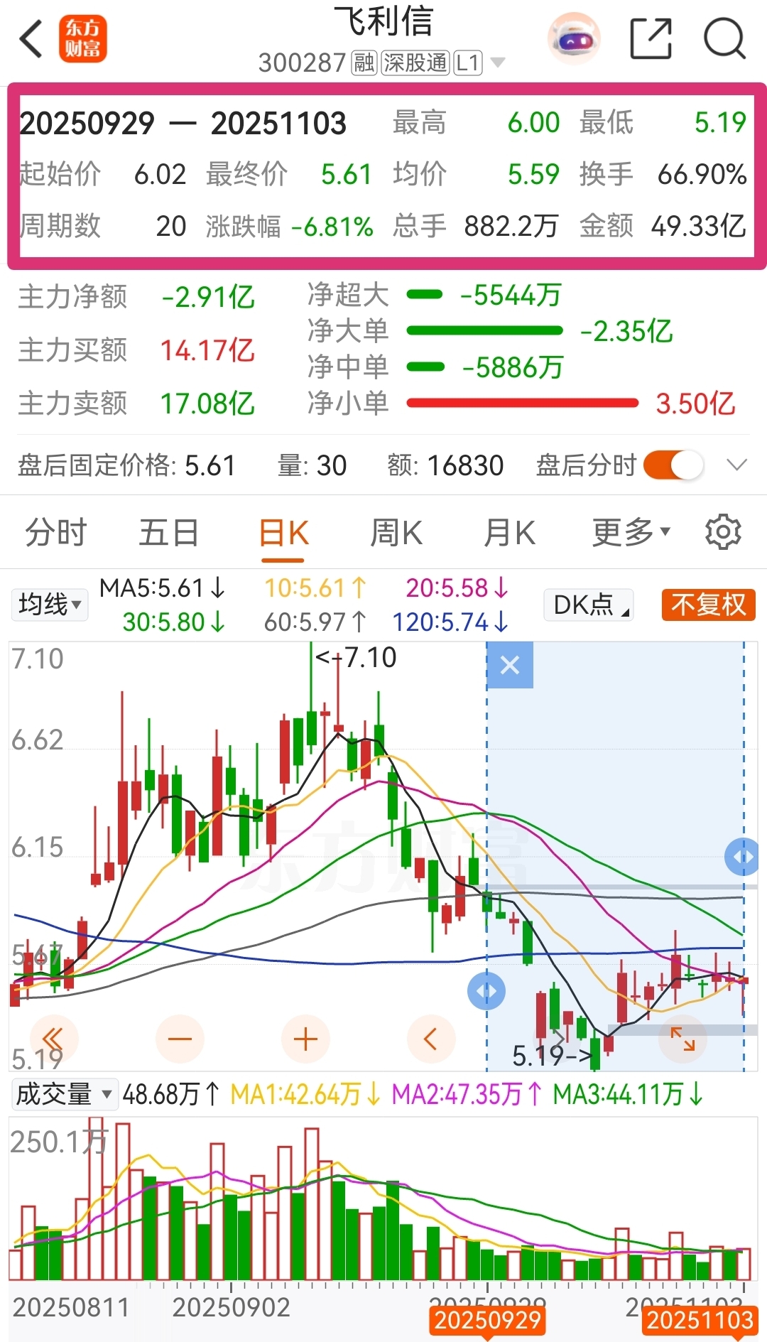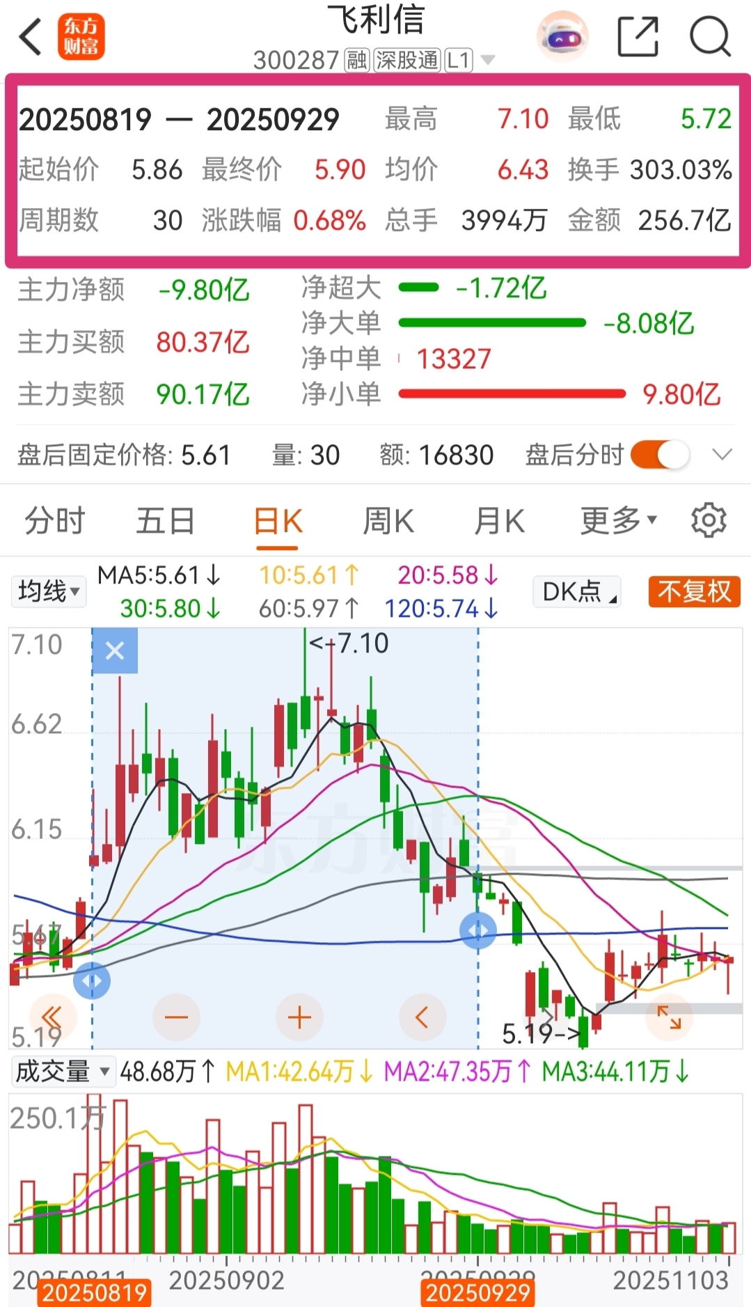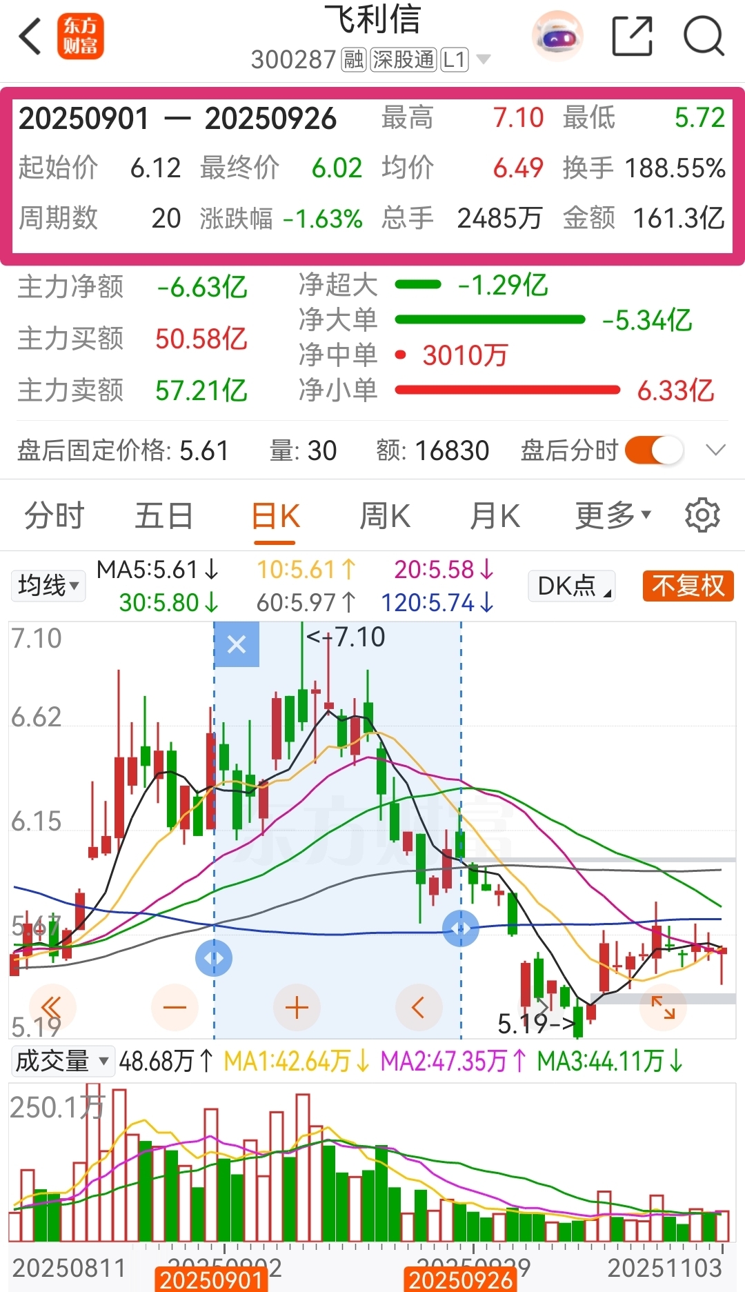 $飞利信(SZ300287)$ 老鲨鱼出入飞利信N多次了!历来都是打短差,从来都不相信股吧里有股神(棍)或者砖家叫兽!涨凶了必须卖!在相对的底部,跌凶了别恐惧,抓住机会逢低买入待涨为上策!哪里像那些又装【表仔又要立排方】的心机表们!互联网是有记忆的!自己买入卖出难道没有主见?凭什么买?凭啥又卖?皆为利来!多多参考学习老鲨鱼发的下面几幅区间交易的详细数据截图吧!继续!