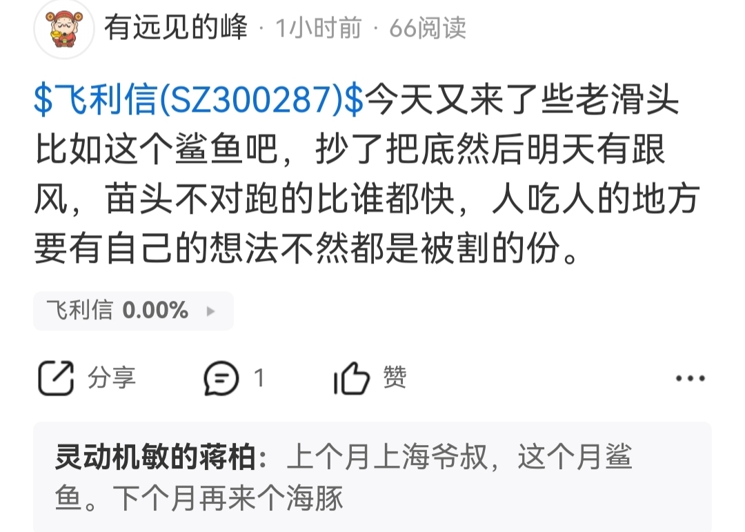 老鲨鱼出入飞利信N多次了!历来都是打短差,从来都不相信股吧里有股神(棍)或者砖家