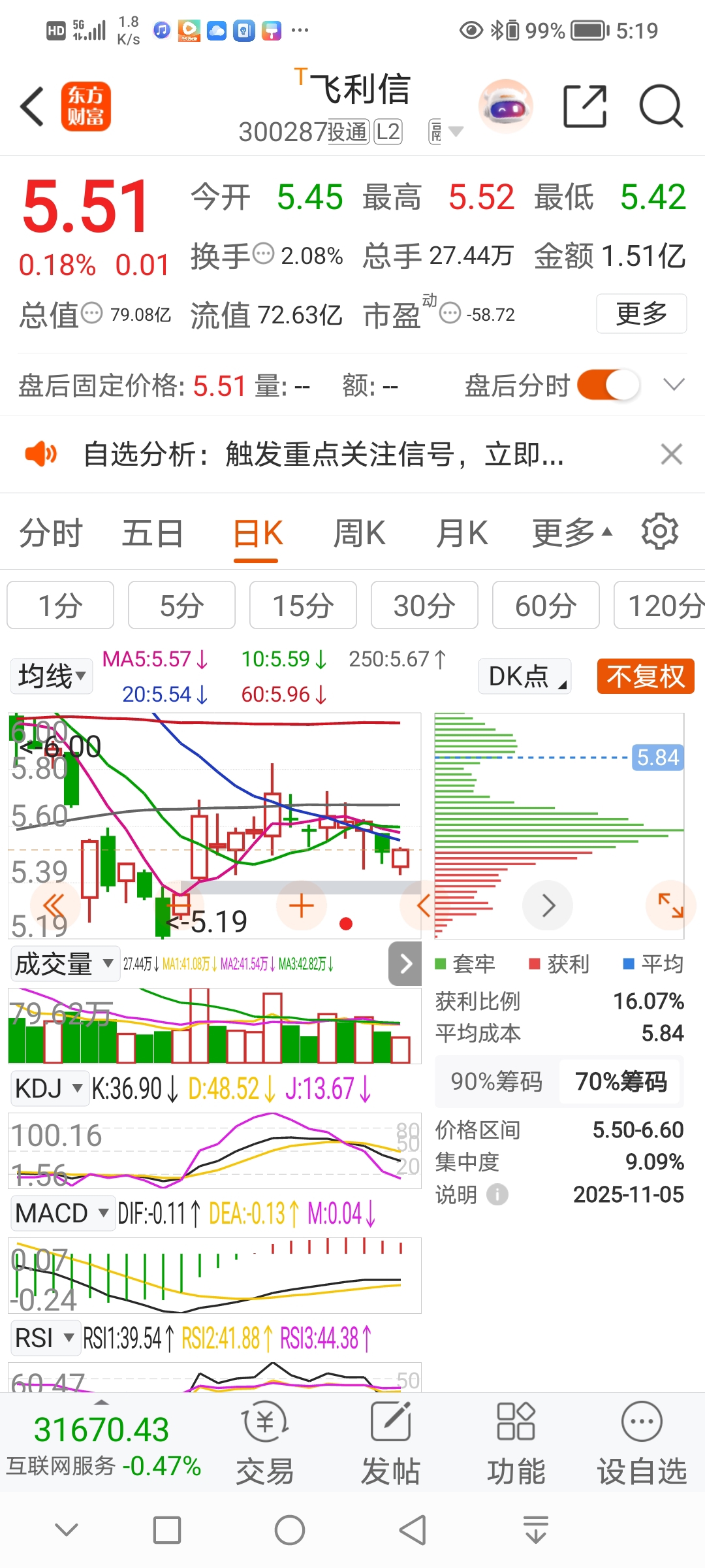 $飞利信(SZ300287)$ 70筹码有增长,属于主力的,明天开盘下杀那一刹那干进去,当天必有赚,,走着瞧验证一下