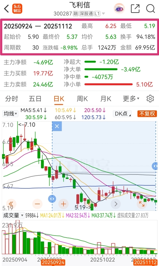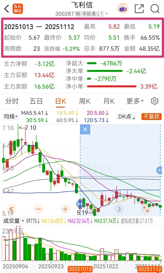 $飞利信(SZ300287)$ 为啥不敢逢低买入!有胆砸到5.30元!继续!
