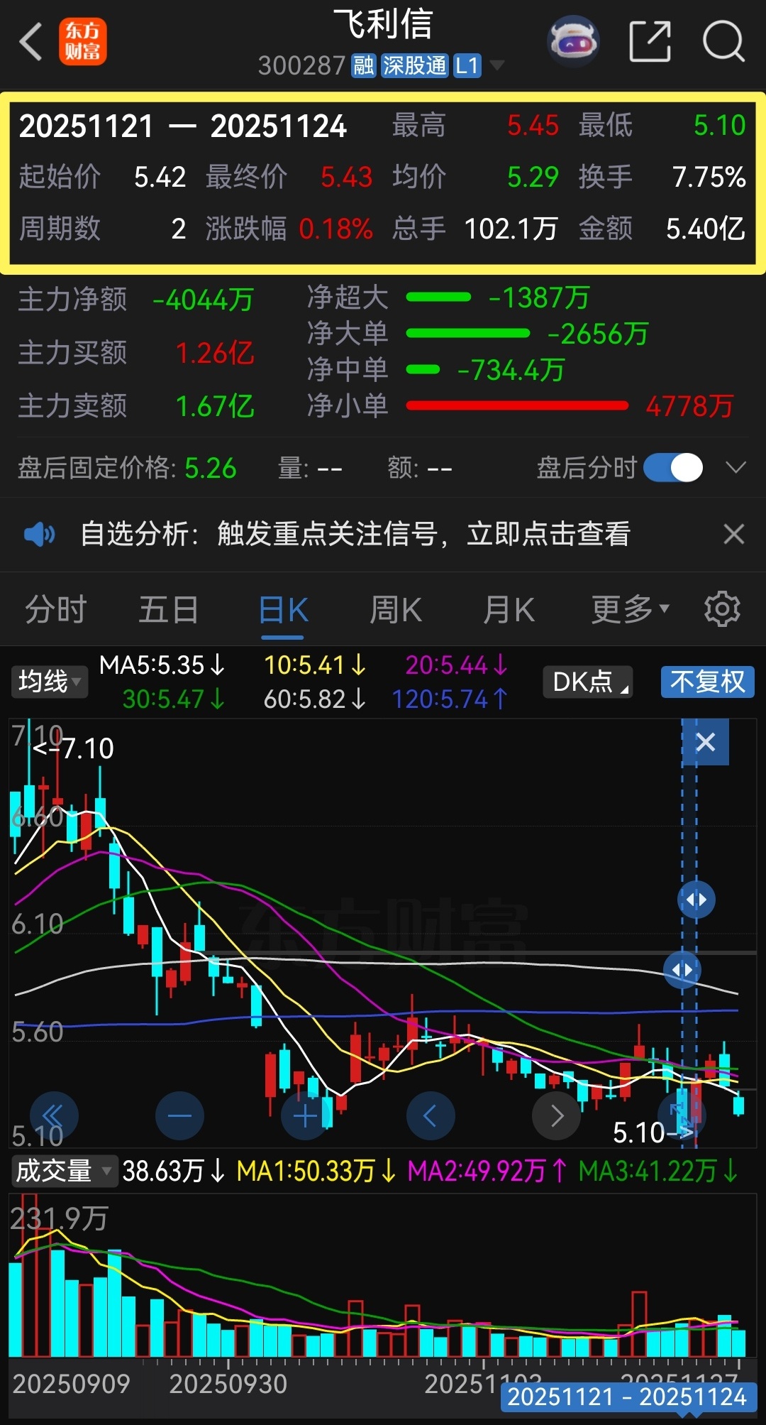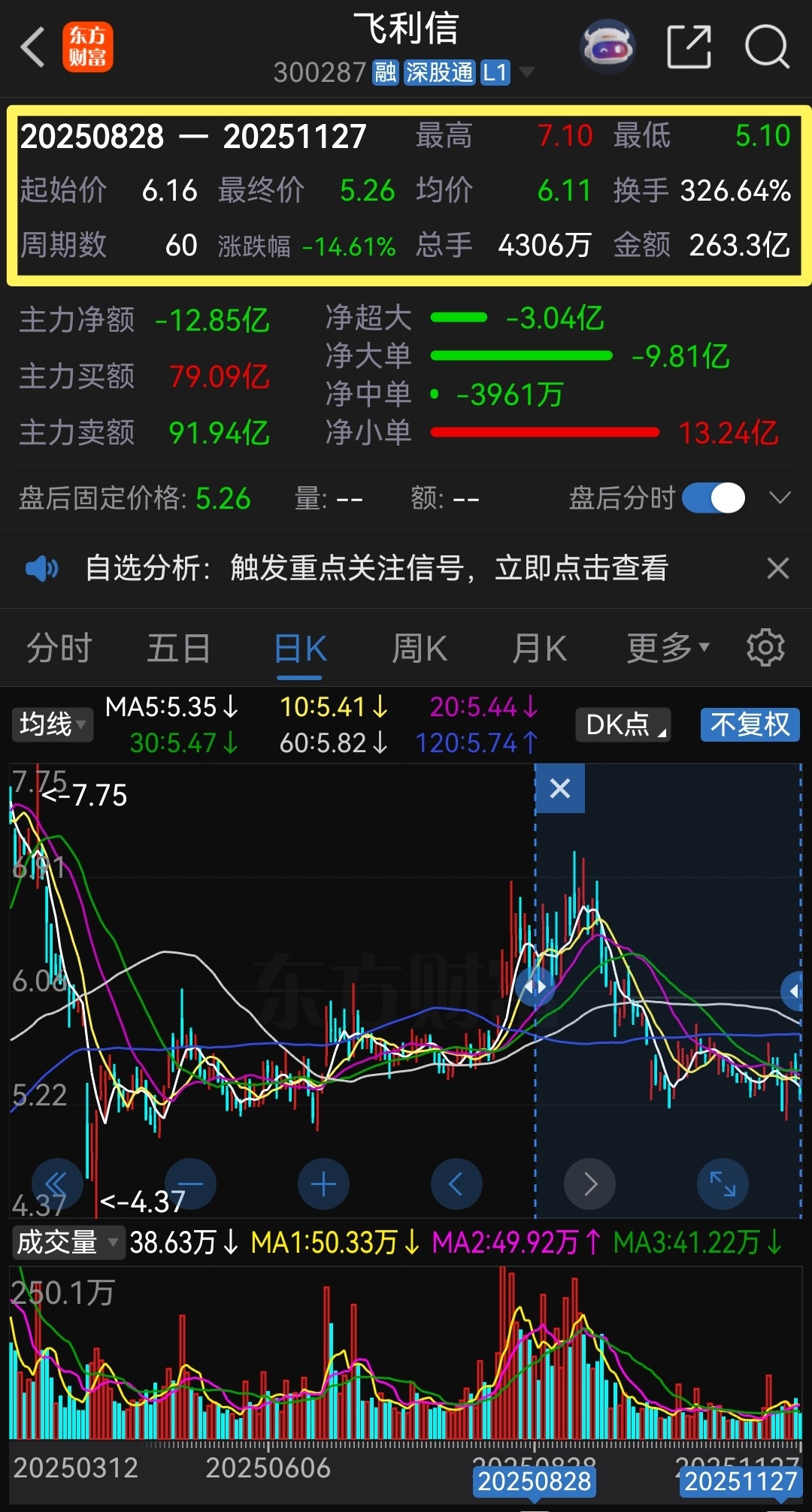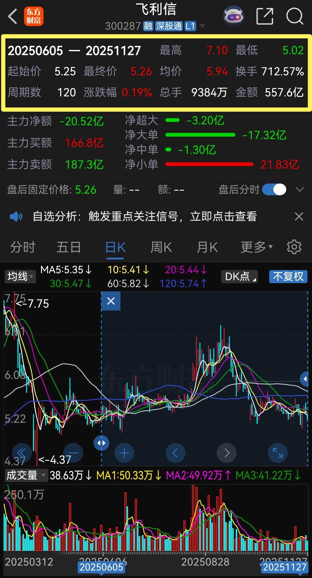 怕个鸟鸭!飞利信在前面二次触底的日成交均价5.30元,5.29元都高于今天的收盘5.26元!继续砸!老鲨鱼好买点入仓待涨!