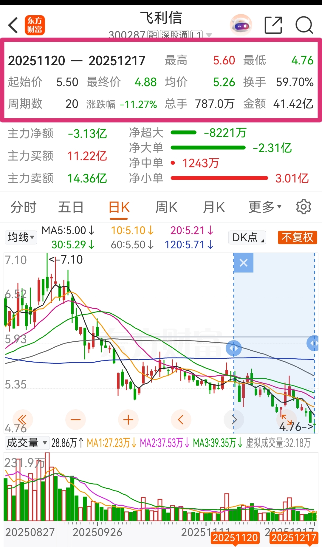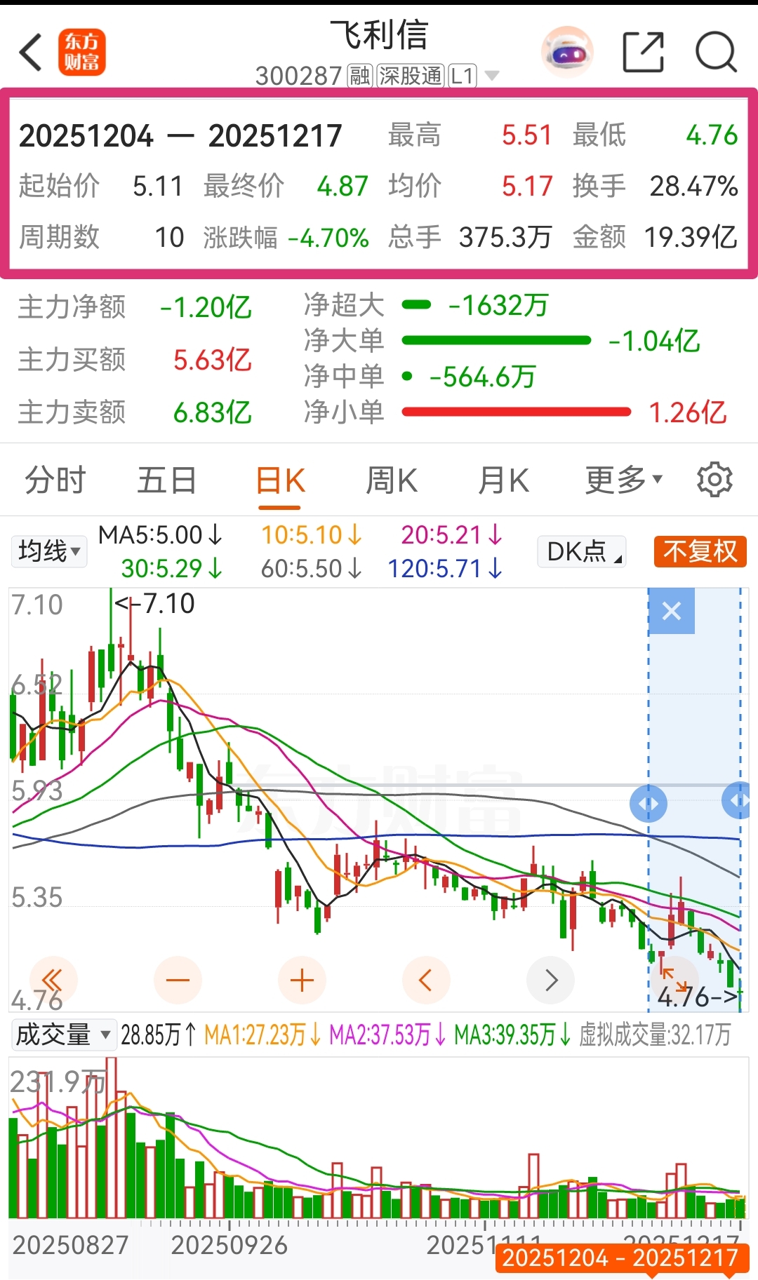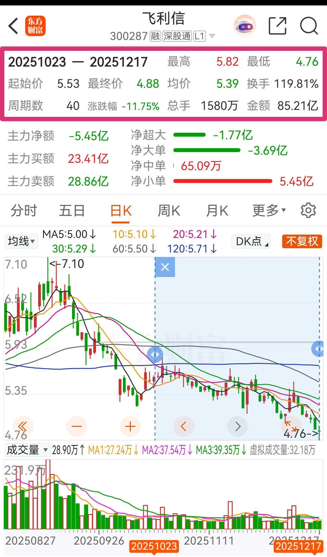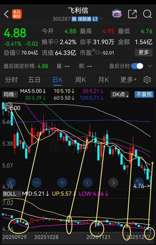 $飞利信(SZ300287)$ 飞利信今天最低价4.76元再次击穿BOLL线下轨4.86元!昨天收盘4.90元,今天此刻成交均价为4.84元,【老鲨鱼仍然按传统方式的打法弄】沪深两市金典战例!基本面,财务报表没有什么大问题!成交量换手充分,远低于区间交易的持股成本价均价,当股价击穿布林线下轨之时!是载难逢捡钱的大好机会!屡试不爽!拭目以待!