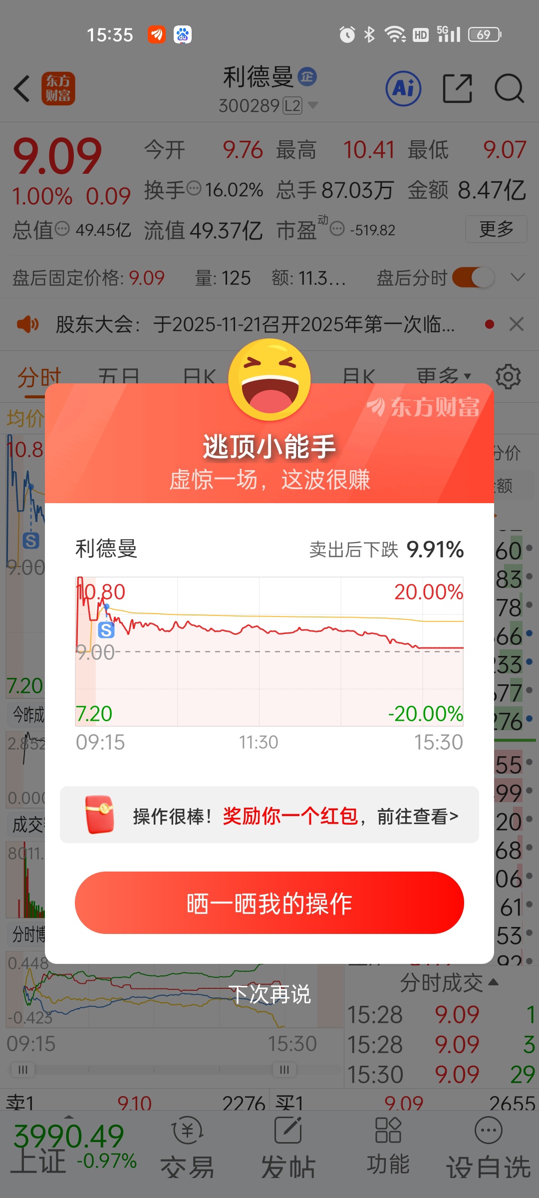 $利德曼(SZ300289)$ 可减仓或出局,回落再看