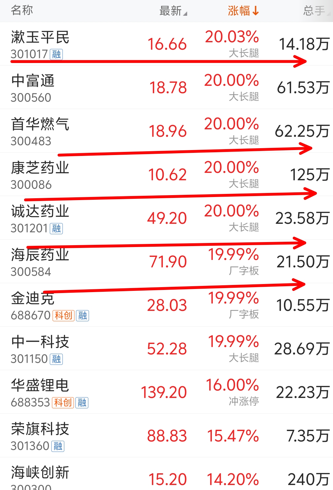 昨天进的散户们一个比一个猴精,算盘珠子都崩我脸上了,全跑利德曼赌重大重组去了。结果昨天十几家医药股涨停。