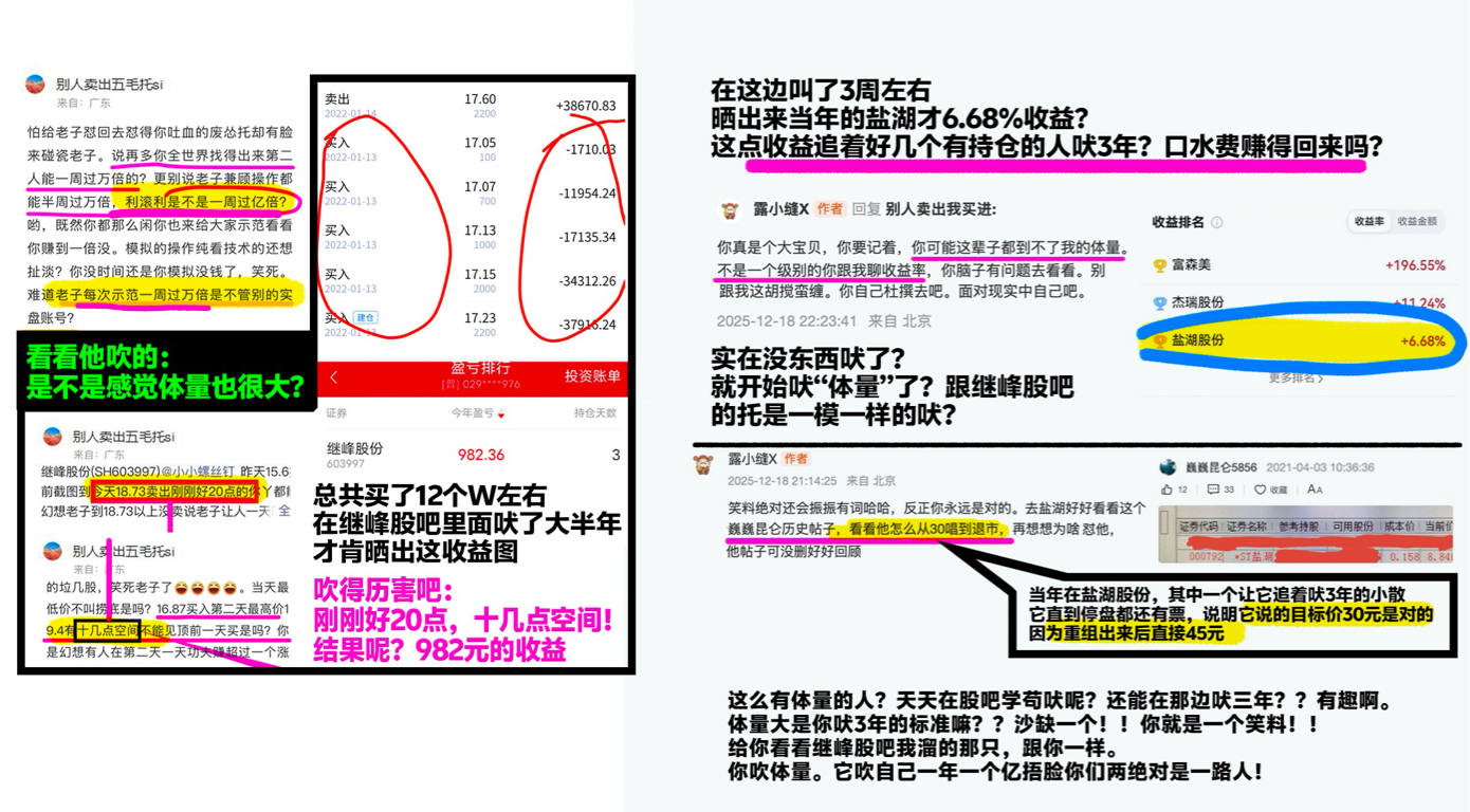 $利德曼(SZ300289)$ $继峰股份(SH603997)$ 看来这些职业的人说话都差不多的。雷声大雨点小!!!追求着人家吠了3年结果就6.68%收益?难怪叫了3周不肯晒。。。。整个股吧的笑料。当年追求着好几个人吠,结果其中一个被它吠的还拿到了停盘重组直接45元。(它的意思说它预测盐湖30元不准,所以就天天咬它,结果停盘重组出来45!那请问谁预测的准?谁是笑料?)