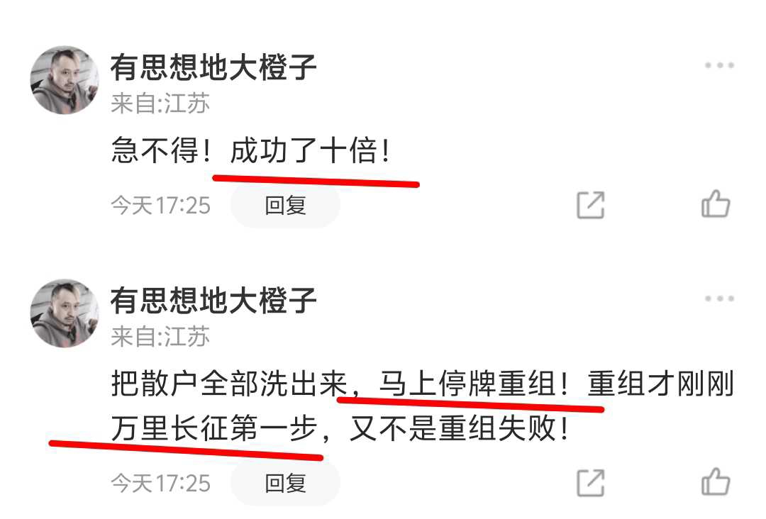 急不得!成功了十倍!把散户全部洗出来,马上停牌重组!