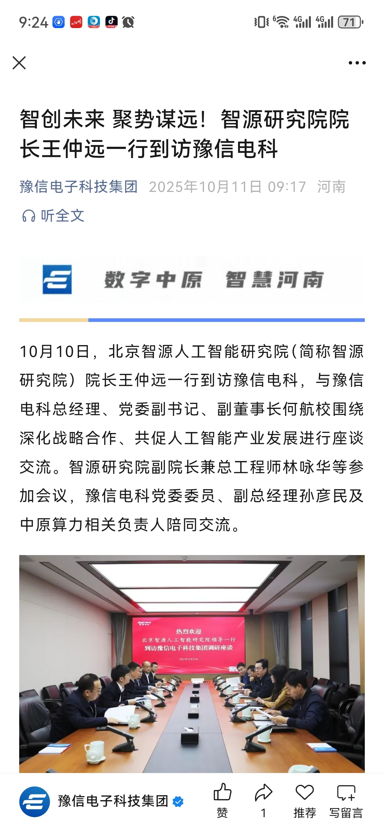 $荣科科技(SZ300290)$ 亚东去哪了,快一个月没看见了。话说智源来的挺快啊,豫信节前刚去参加他们的会。