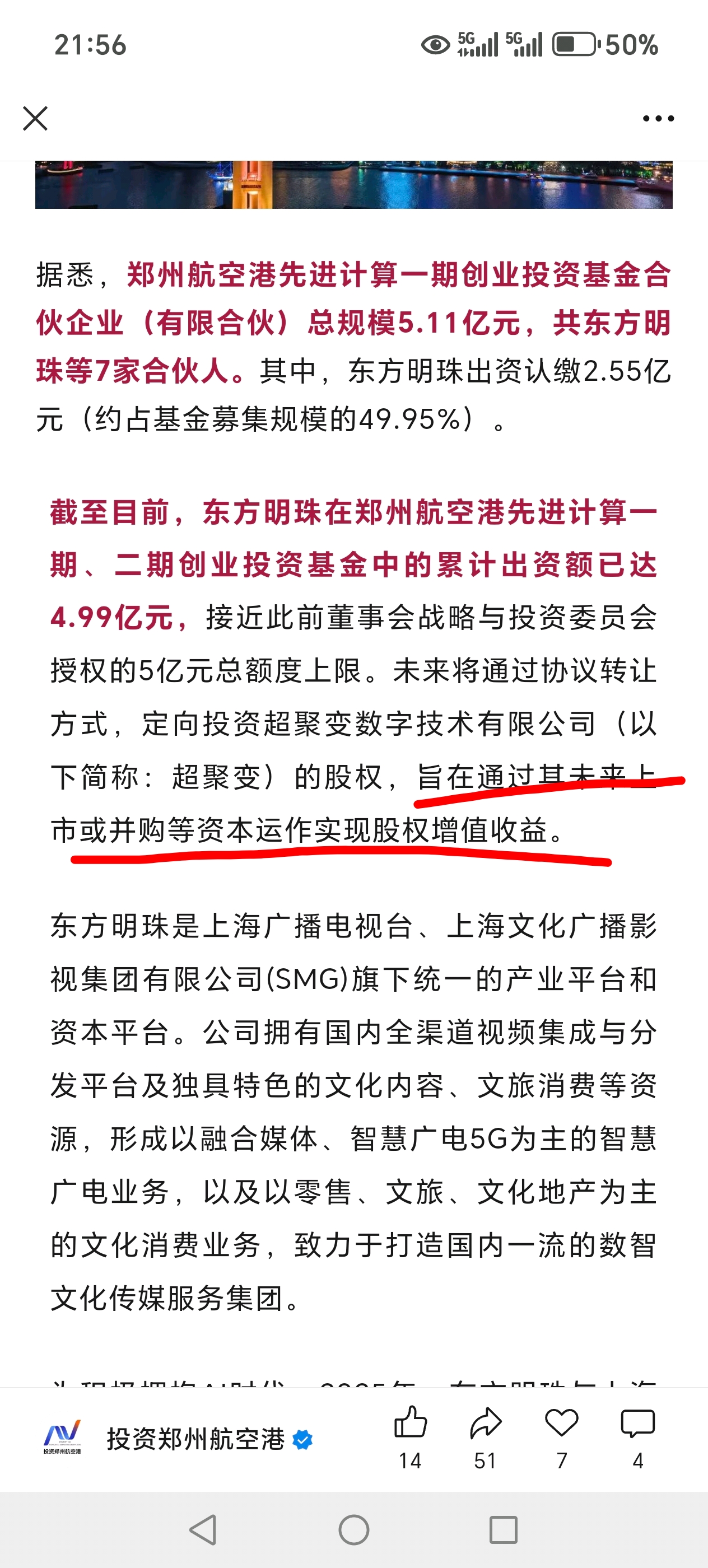 郑州航空港官方公众号挺有意思,东方明珠的公告里可没提并购!再琢磨一下,中创智领的