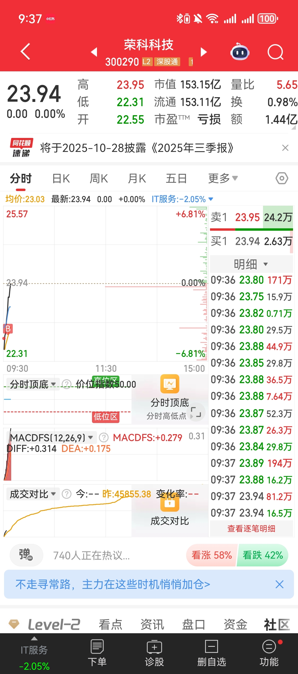 $荣科科技(SZ300290)$ 我说捡点筹码,今天大盘上去,他下来,明天撤