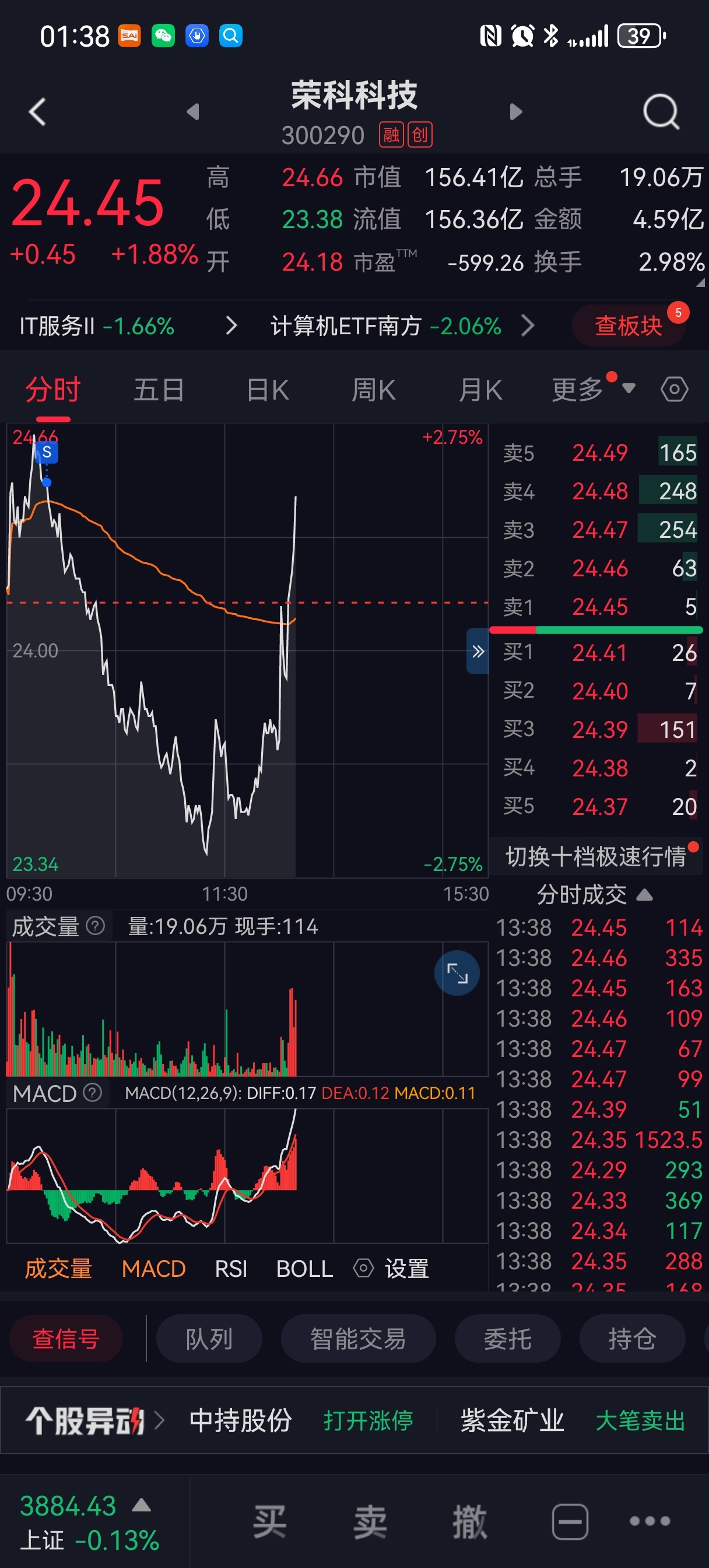 $荣科科技(SZ300290)$ 卖的时候还就饿得自己卖到高点,现在没仓位买了。哎。目光短浅的我啊