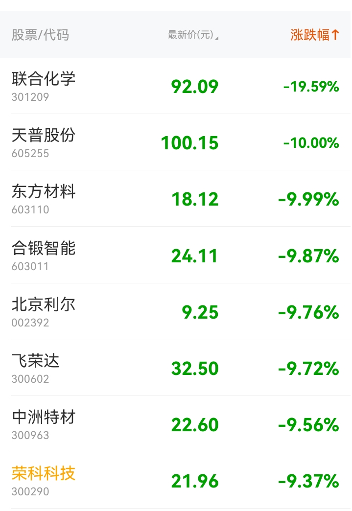 全市场跌幅,倒数第八,荣科牛掰!!!
