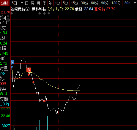 哎,想到了。今天大盘会调整,荣科今天也会调整去踩5日线。早上荣科走的挺强,被迷惑了,还是补早了。