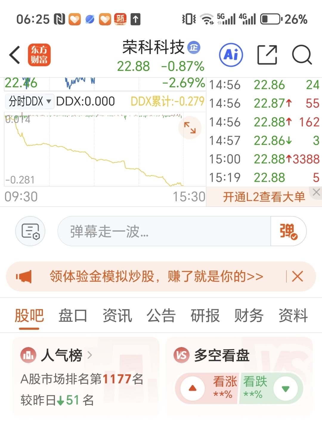 $荣科科技(SZ300290)$ 排名1177,股价2288,莫非是天意,