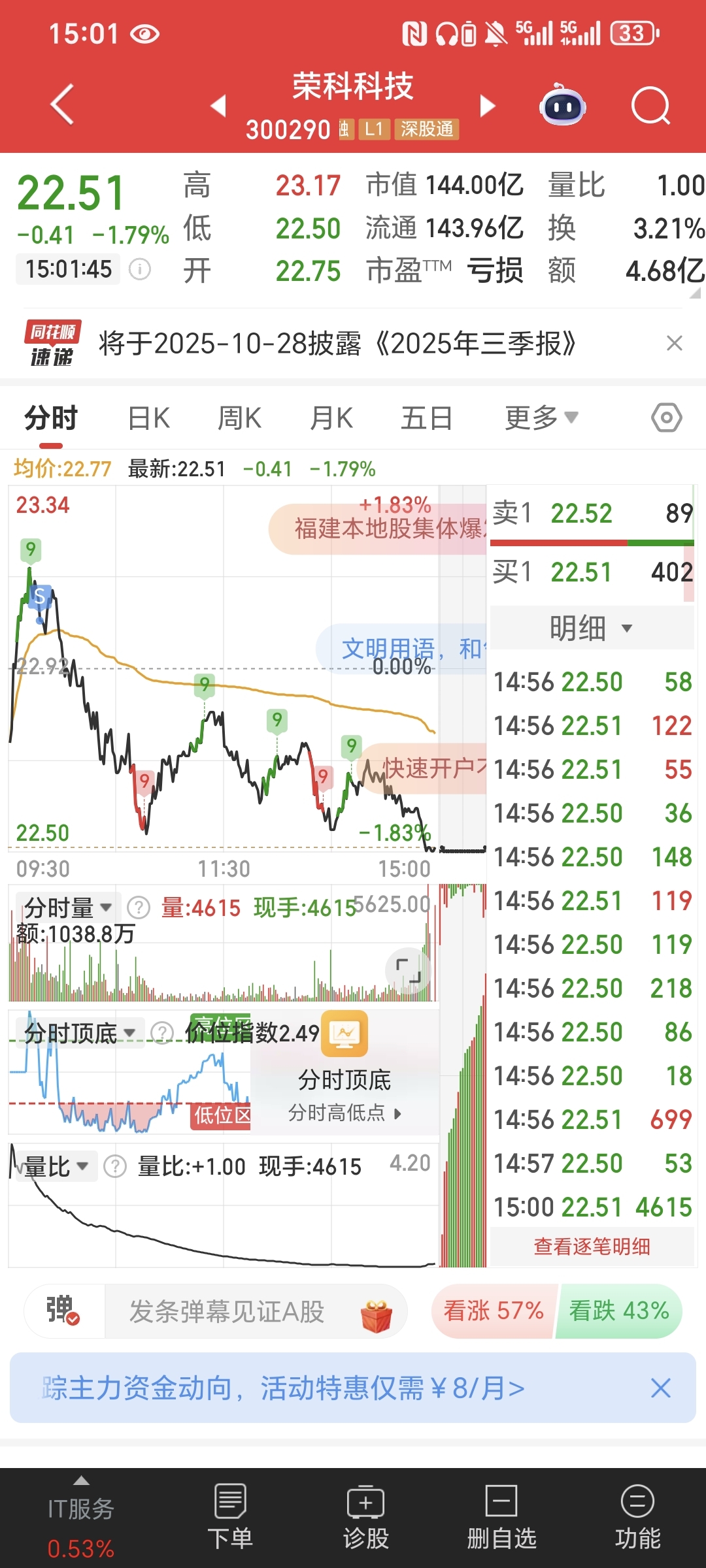 $荣科科技(SZ300290)$ T出一部分,希望晚上有好消息。最近在建发和力星打野