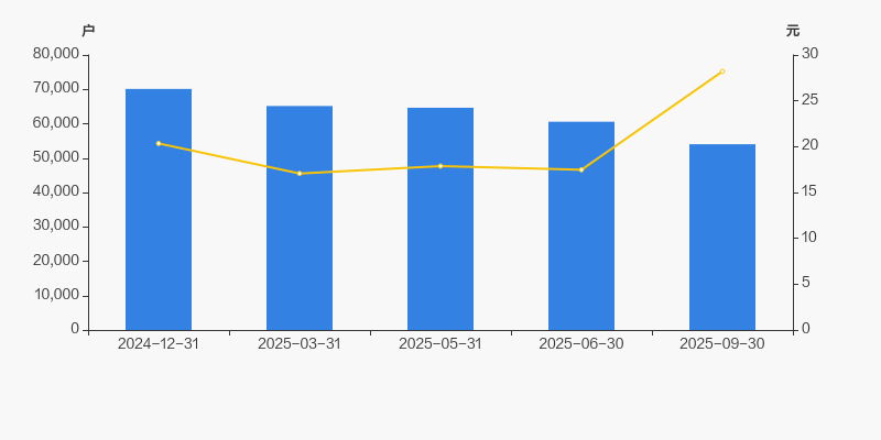 截至2025年9月30日,公司最新流通股本为6.4亿股。户均持有流通股数量由上期的1.06万股上升至1.18万股,户均流通市值33.38万元。