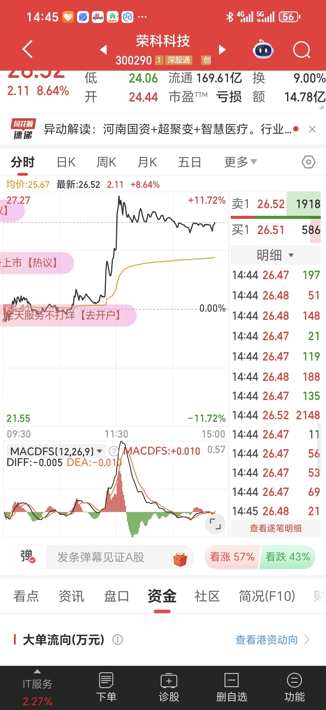 $荣科科技(SZ300290)$ 终于压单被吃掉2000多手