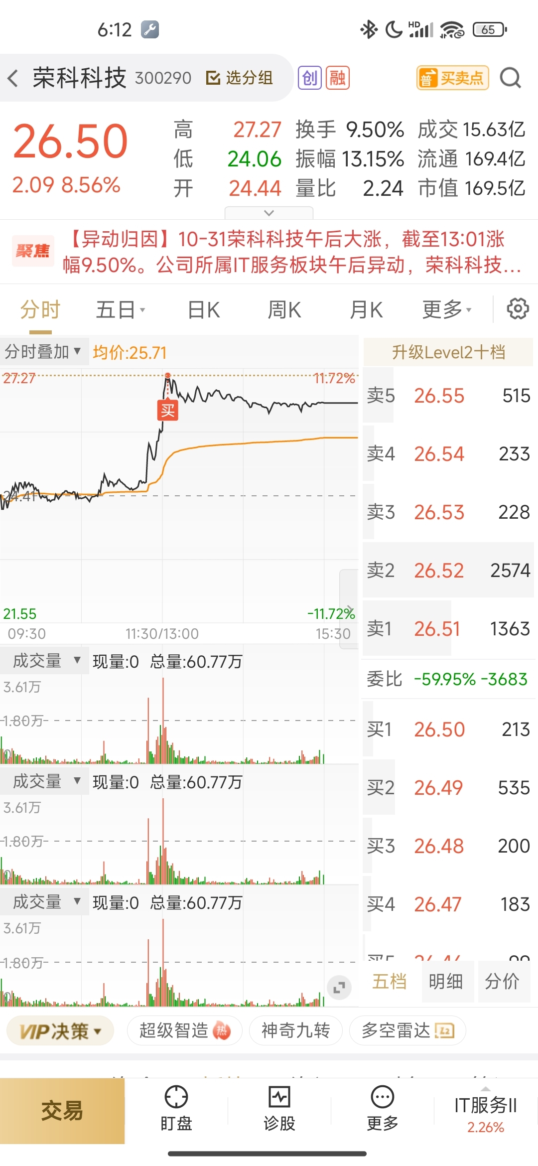 $荣科科技(SZ300290)$ 下午一开盘几乎最高点追的,满仓40w