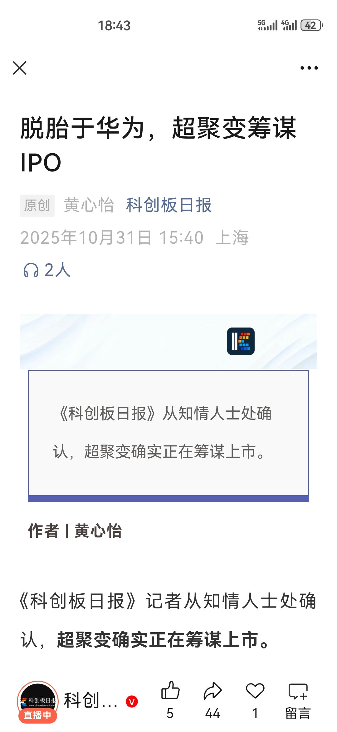 $荣科科技(SZ300290)$ 官方媒体发布:超聚变 IPO 上市