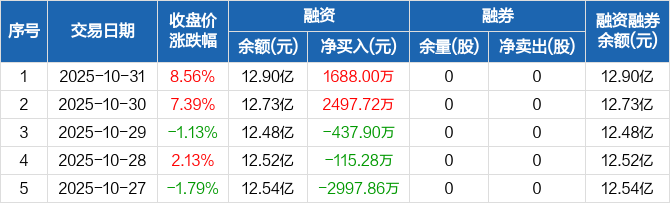 荣科科技:融资净买入1688万元,融资余额12.9亿元(10-31)