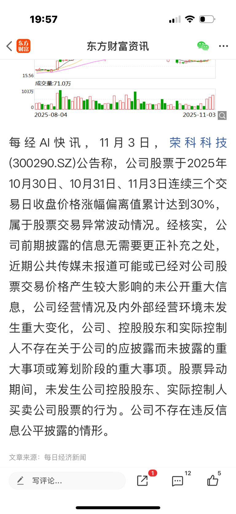 同样是异动公告,有区别哦,荣科没有否认重组这几个字,明天继续涨。