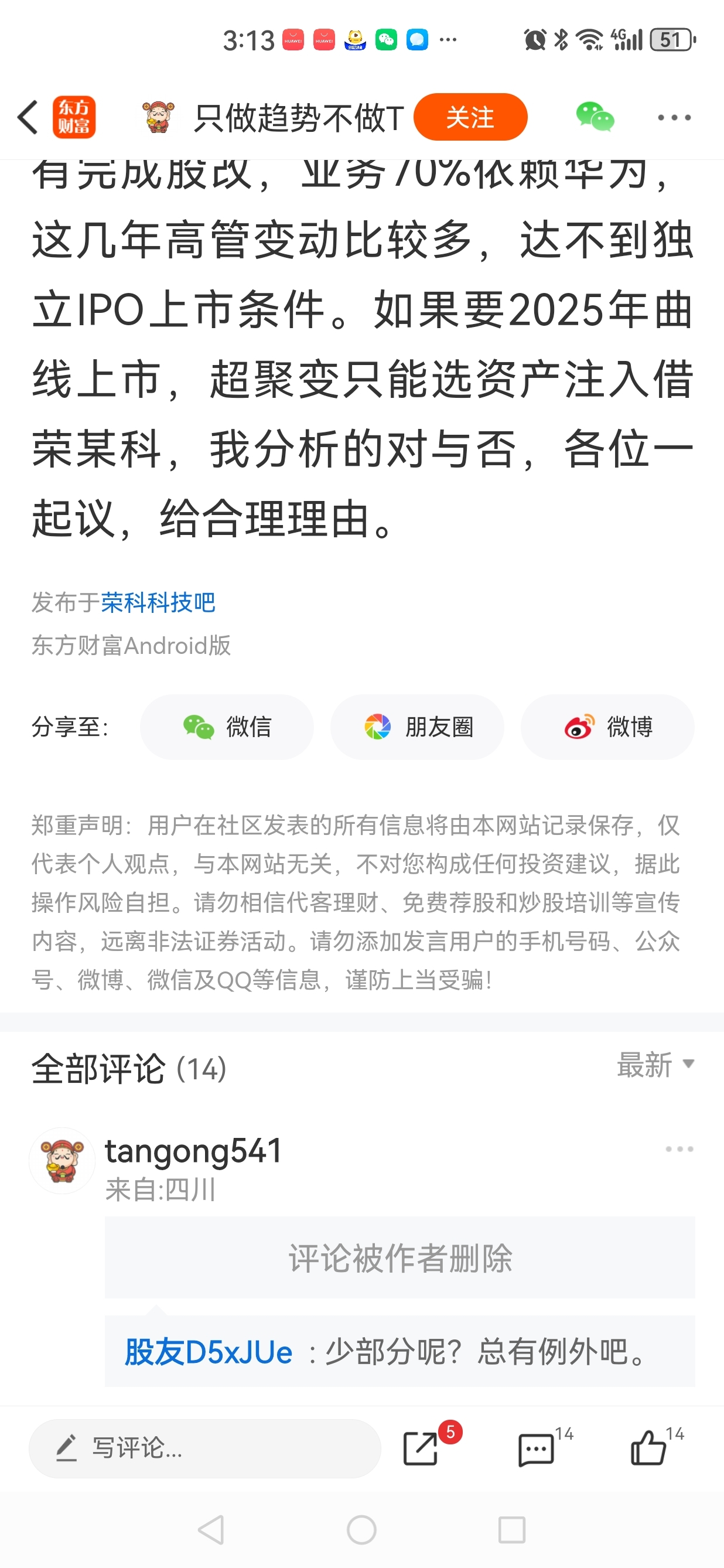 只做趋势不做T,你既然发出来说讨论,那就不要删除别人的观点,限制别人发言。真不知