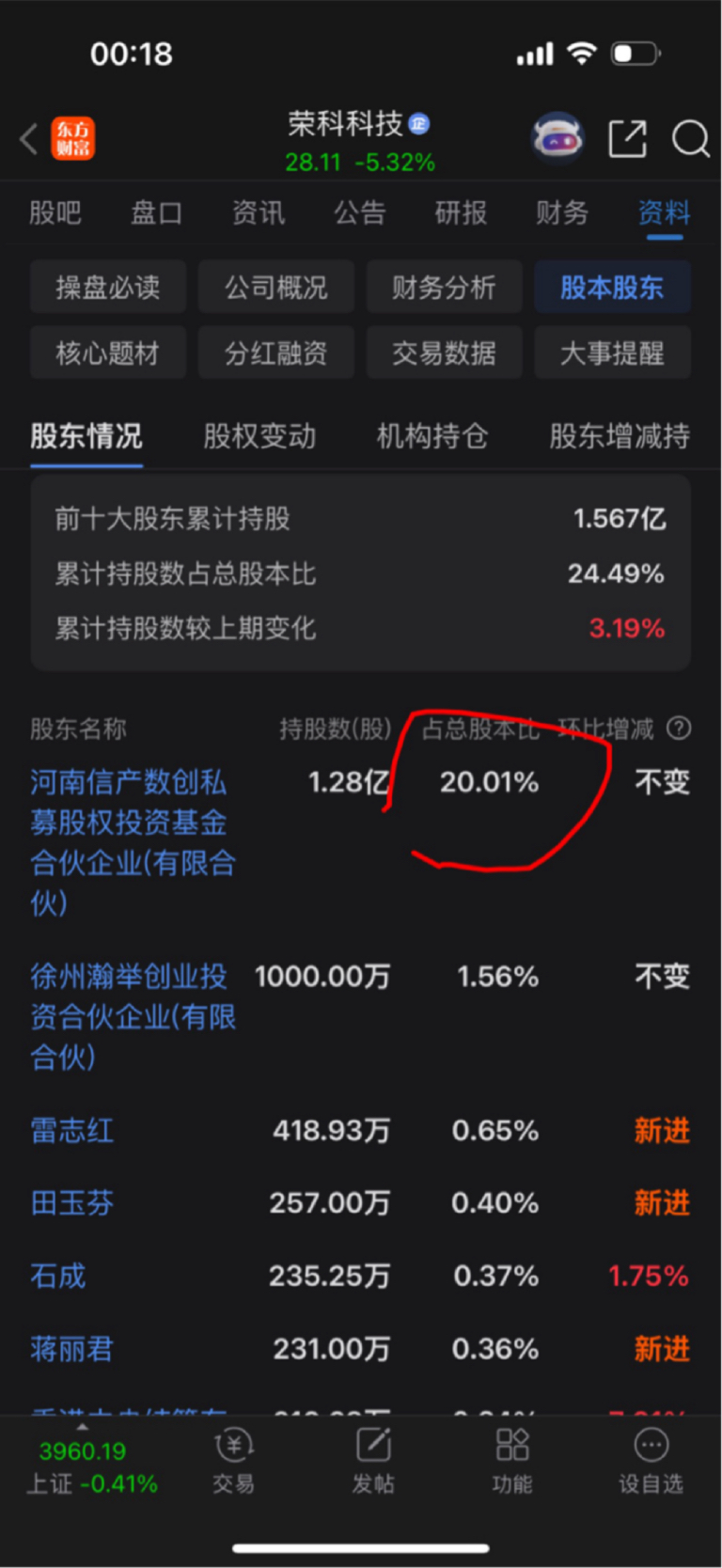 $荣科科技(SZ300290)$ 闲扯一个问题,这么多年过去了,河南信产为什么一直持有20.01%的股权,而不是公开回购或者协议收购一些呢,如果在准备让超聚变注入,不是信产的股份越多越好吗?