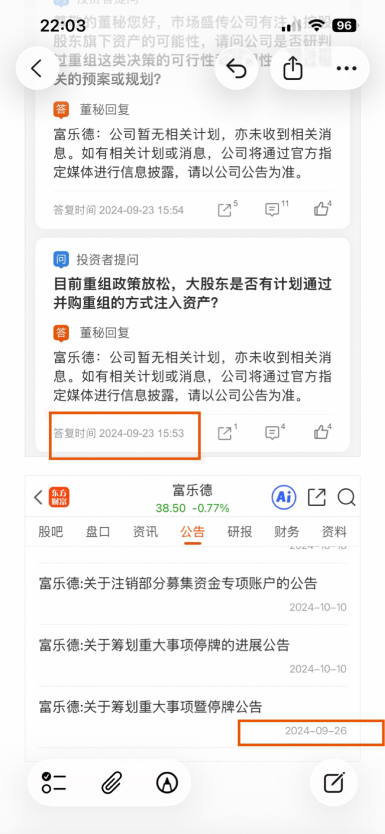 $荣科科技(SZ300290)$ 富乐德,9月23日辟谣没有重组计划,9月26日就停牌重大资金重组,董秘的话能信吗?